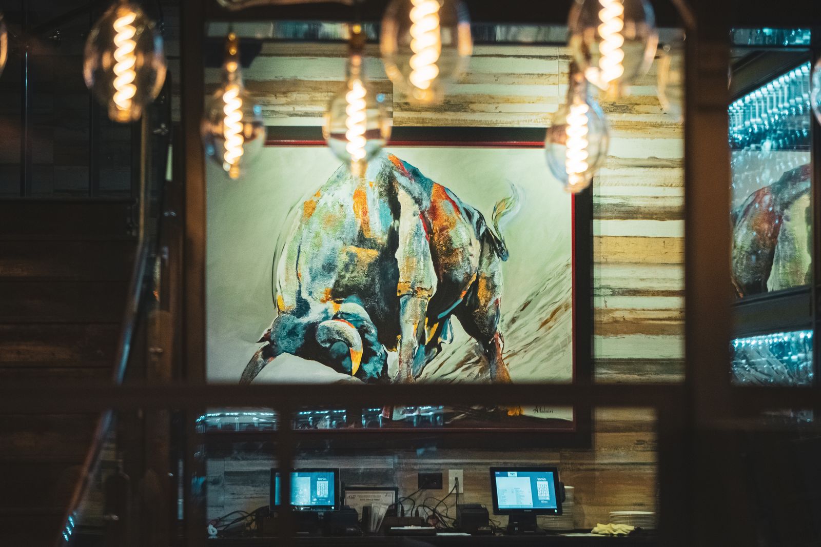 Set in a former antique shop, Little Alley Steak is designed to evoke the feeling of classic steakhouses and butcher shops. The building utilizes refurbished brick, white subway tiles and reclaimed wood from the original Little Alley Tapas Bar & Restaurant to create an intimate atmosphere while track lighting fashioned from meat hooks illuminates the dining room. The cozy and romantic ambiance is completed with seating areas comprised of booths and tables situated between low walls.